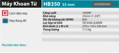 Makita HB350 là dòng máy khoan từ cầm tay chuyên dụng được thiết kế cho các công việc khoan lỗ trên kết cấu thép và bề mặt kim loại dày. Với lực hút nam châm cực mạnh lên đến 8.000N, máy đảm bảo sự ổn định tuyệt đối và độ chính xác cao trong suốt quá trình vận hành. Sản phẩm sở hữu thiết kế gọn nhẹ nhưng vô cùng bền bỉ, là trợ thủ đắc lực cho các kỹ sư tại công trường xây dựng, nhà xưởng cơ khí và đóng tàu.